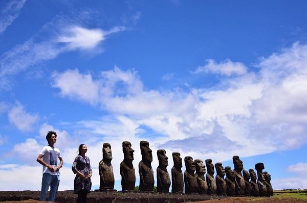 写真提供:@a_wholenewworldさんご本人コメント(抜粋) チリ イースター島.ここにきたらこれやらなきゃ.モアイって手も、お尻もあるんですよ.っていうことで2人で真似っこしました