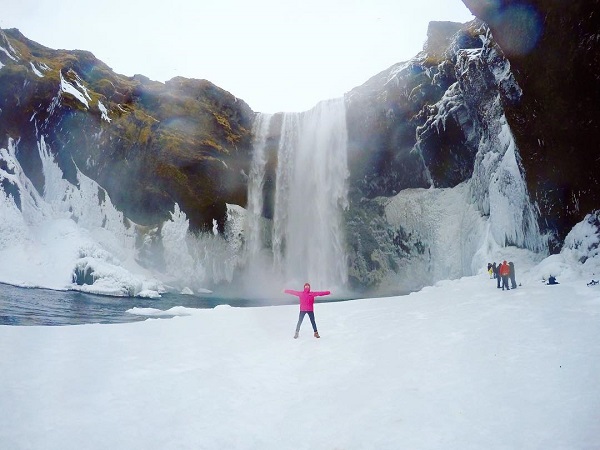 アイスランド南部のスコゥガルにある滝「スコゥガフォス滝」。幅は約25m、落差は約60mで、滝が多いアイスランドでも最大級の規模!!轟音とともに勢いよく水が流れ落ちる、大迫力の瀑布です。滝のある崖は、かつては海に面していたと考えられています。現在は陸地が広がり、もともと海底だった低地部分とそれ以前から陸地だったアイスランド中央高地との明瞭な境界となっています。勢いよく流れ落ちており、水量の多い晴れた日には、虹がかかっていることも多く、見応えがある滝!滝の上まで登る遊歩道や展望台もありますので、時間があればぜひマイナスイオンを感じながら散策してみては?