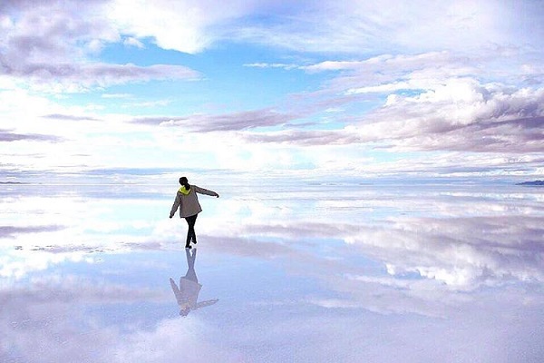 写真提供:@yume_tripさん【投稿コメント(抜粋)】スコゥガフォス 足下はゴリッゴリの氷雪、滝も半分くらい凍ってたのかな?真っ白な世界に、水が突然ゴーーーって流れ落ちる光景で驚きました 近寄れば見上げるほど、とっても大きいんだけど、この気温。近寄ればその分水しぶきもね、、笑(目しか出してません)2016.02.268.「ウユニ塩湖」(ボリビア)