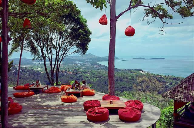 島全体がココナッツの木で覆われていることから「ココナッツ・アイランド」とも呼ばれるサムイ島。そのサムイ島内のチャウエンビーチの近くにあるバー&レストラン「ジャングルクラブ」は、山の上にあり絶景が楽しめるオススメスポット。