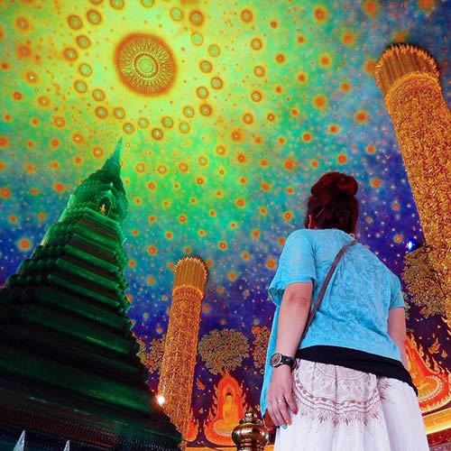 <宇宙のような幻想的な世界観を感じるバンコクの寺院>