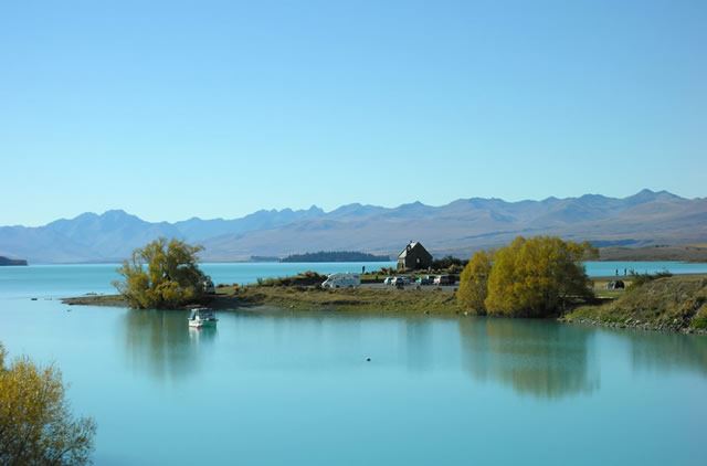ニュージーランド国内で8番目に大きな湖「テカポ湖」。氷河から流れ出た岩石の微粒子が水に溶け込み、神秘的なミルキーブルーに輝きます。