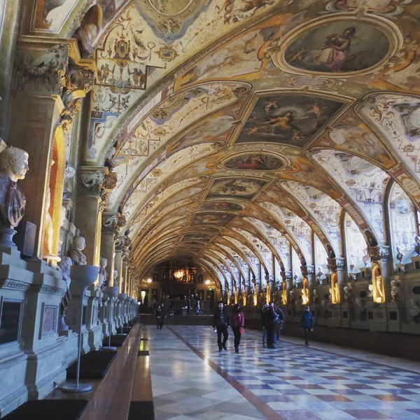レジデンツは、ミュンヘンの旧市街北部にある、旧バイエルン王国ヴィッテルスバッハ王家の王宮で、現在は博物館や劇場として公開されています。目も眩むような部屋の数々で知られ、シンプルな外観からは想像ができないほど豪華な装飾であふれ、ゲーテやナポレオンも驚いたという話があります。