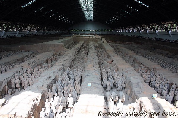 1974年に、発掘数8,000千体にもおよぶ始皇帝の軍隊、 兵馬俑が発見された。世界の考古学史上、20世紀最大の発見と言われている。地下に約2000年眠っていたと言われており、当時の加工技術の精密さにも驚かされる。