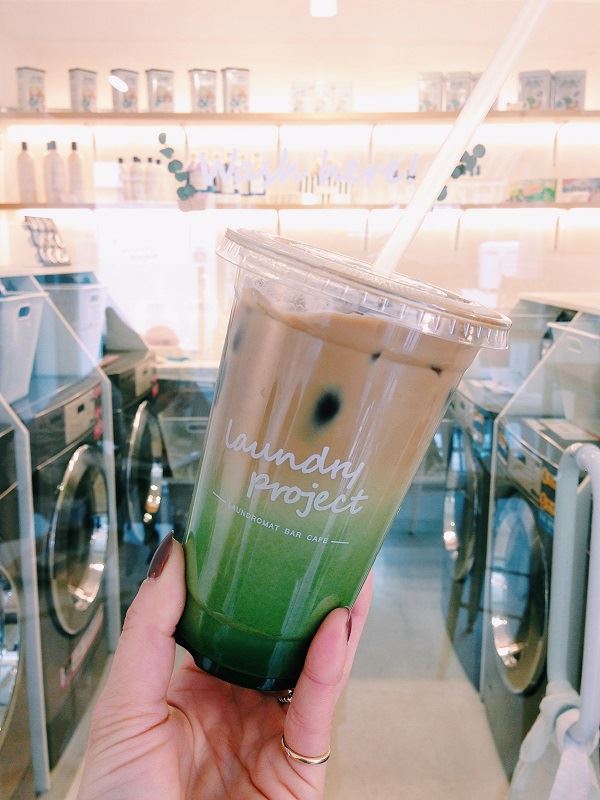 ドリンクもフォトジェニックなものが沢山。可愛いソーダ類も沢山あったので迷いましたが、グリンティーラテとグレープフルーツエイドに。グレープフルーツエイドは、オーダーしてから絞ってくれるのでフレッシュでオススメです。ランドリールームもとてもオシャレでした。ドラム型のウォッシュマシンにアイロンも完備!洗剤もランドレスや可愛いパッケージのものが置いてあります。洗濯をしなくてもウォシュルームは自由に入れるので、ドリンク片手にフォトジェニックな写真が撮れます。
