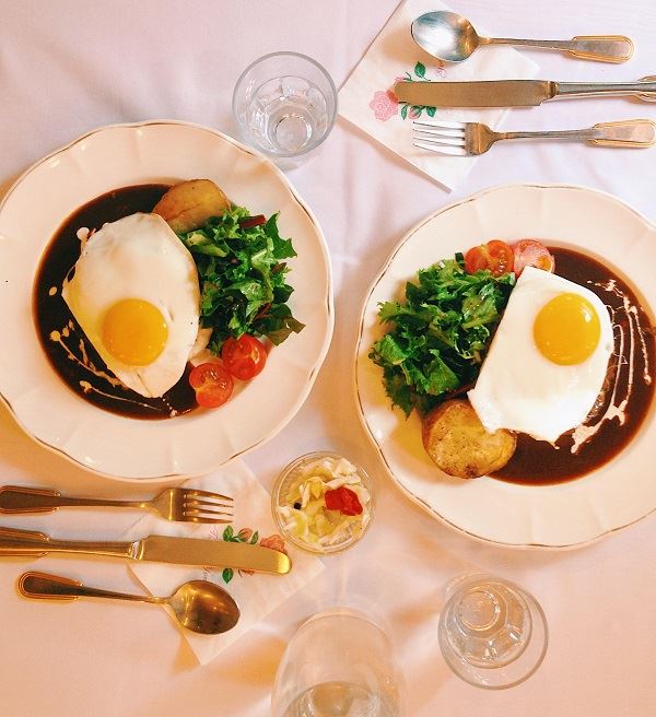 ランチメニューは、ハンバークとカツレツの2種類でそれぞれREDソース(トマト)か、BROWNソース(グレービー)か選べます。ハンバーグの下にはライスじゃなくてチーズリゾットが!可愛いお店の雰囲気とは裏腹に意外とボリュームのあるしっかりご飯なので、女子達に混ざって地元のカップルも多かったです。男性にも満足してもらえると思うので、カップル旅行のランチにもオススメしたいお店です。
