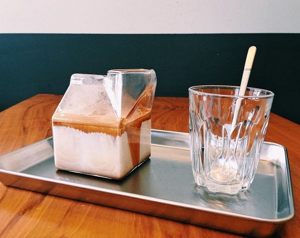 懐かしい牛乳パックもガラスだとこんなにオシャレ!ミルクとエスプレッソのツートンカラーも絵になる完璧なアイスラテ。味は、本格的なエスプレッソを楽しめるので可愛いだけじゃ物足らない本格的なコーヒーラバーにもオススメです。