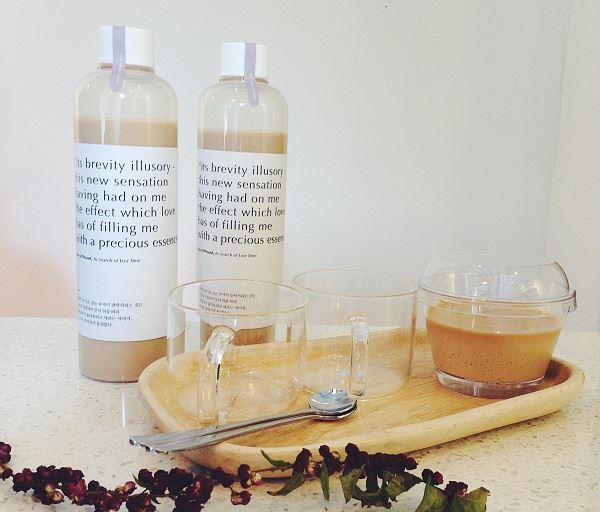 上で紹介した1920の並びにある、韓屋をリノベーションしたカフェ。こちらはミルクティー専門店で、オリジナルのロイヤルミルクティーやチャイなどが楽しめます。小さい隠れ家的なカフェなので座席数は少なめですが、アイスロイヤルミルクティーはシンプルなタイポグラフィがオシャレなボトルにボトリングされているのでテイクアウトも◎。ミルクティのパンナコッタも美味しかったのでオススメです。