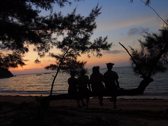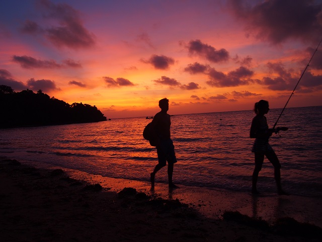 ここのビーチは昼間もキレイですが特にオススメなのがサンセット広いビーチで人もそんなに多くないので静かにゆっくりと自分達の