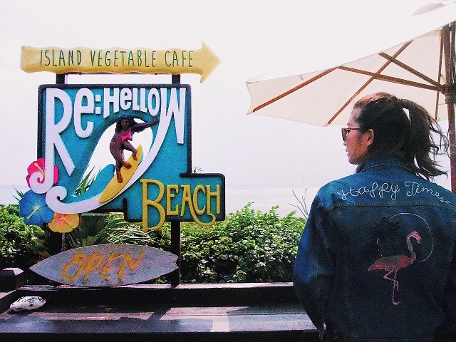 海が一望でき、店内の1つ1つの内装もとっても可愛いCAFE @rehellowbeach 。島野菜を使った料理が多く、