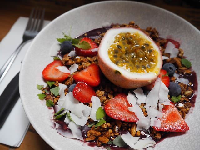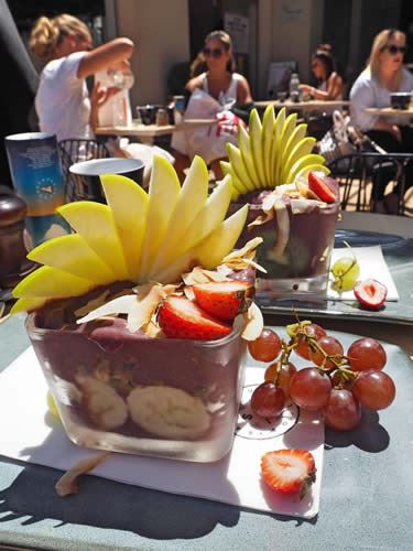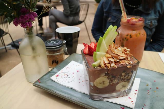 私は天気が良くて、あったかい日によくここのカフェにアサイーボウルを食べに来ます。