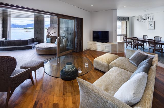 全客室、風光明媚な田辺湾に面しているオーシャンビュースイートで、優雅な滞在をお楽しみいただけます。