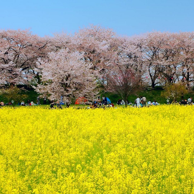 桜の名所として有名な幸手権現堂堤では、桜だけでなく四季折々のお花見を楽しめます。3月中旬~4月中旬までは、桜・菜の花のピンクと黄色のコントラストが見事です。
