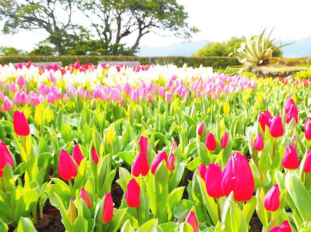 19世紀、日本の近代化に大いに貢献した英国人トーマス・ブレーク・グラバーの遺邸で、 氏が自ら設計し、日本人大工に建てさせたわが国最古の洋風木造建築で、グラバー邸前からの長崎の眺望は格別です。園内のどこかにある2つのハート形の敷石。見つければ幸せになれる・恋がかなうと言われています!ハートストーンに触れると恋愛成就するとも言われています。チューリップは、例年3月上旬~4月上旬が見ごろです。