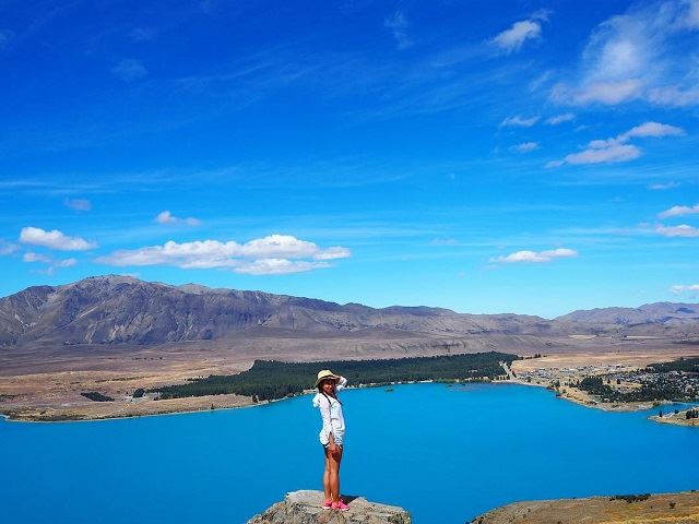 写真提供:@yui120naさんご本人コメント(抜粋) 標高1031m.マウントジョン展望台、足がなくてハイキングで登りました**暑くて辛すぎたけど登りきったらこの景色**まるでペンキで色をつけたようなミルキーブルーのテカポ湖を真上から見下ろせます**ここはカフェもあって絶景を見ながら食事もできるの ちなみに星空観測ツアーもここ 昼も夜も夢のような景色に出会えます