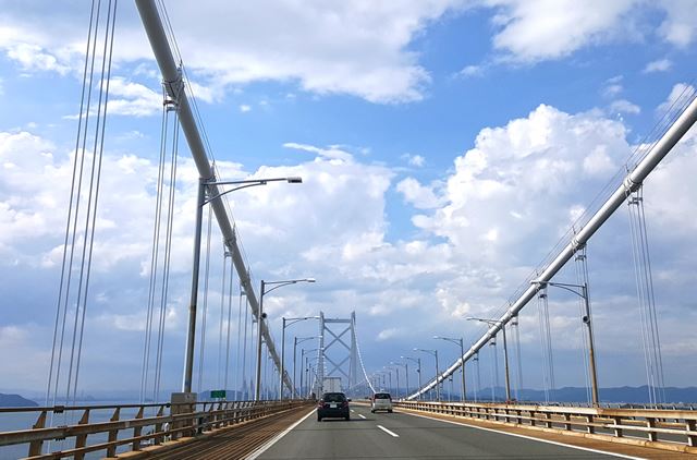 岡山県と香川県を結ぶ世界最大級の橋。明石海峡大橋など本州四国連絡橋の中では最も早い昭和63年に開通しました。