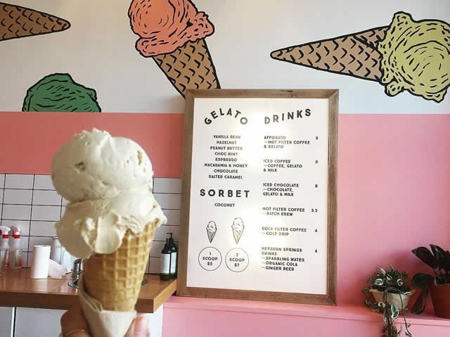 ノースメルボルンにあるアイスクリーム屋さん。近くにはお洒落なカフェが集まります。素材本来の味を生かすためにオーガニックにこだわっているとか。
