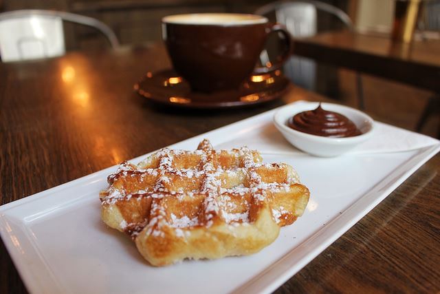 このお店のイチオシはワッフルのようで、ここのワッフルもサクサクで美味しかったです♪私はトッピングにチョコレートを選びましたが、メープルシロップやアイスなどもありました。