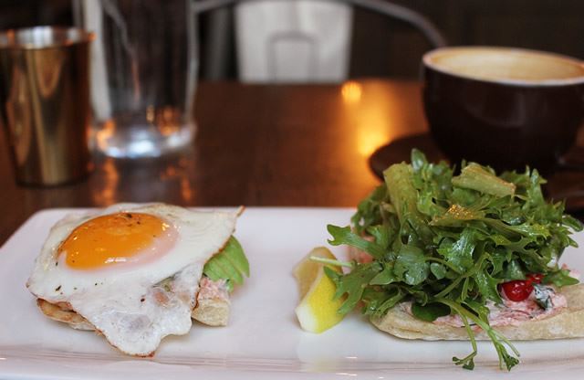 もちろん、ワッフルだけではお腹が空くのでしっかりと食事も頂きました。私がオーダーした食事はチャバタの上にスモークサーモンが乗っていて、その上に目玉焼きとルッコラなどが盛り付けられていて、2種類の味を楽しめて美味しかったです。