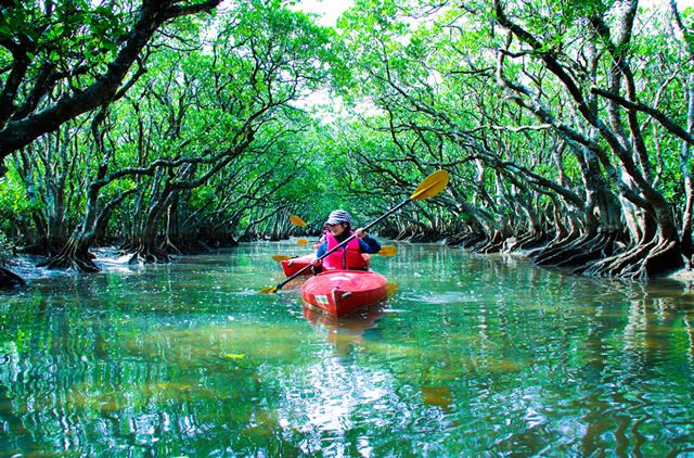 日本では西表島についで2番目の規模で、カヌーで周るツアーが人気です。