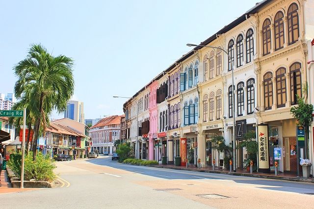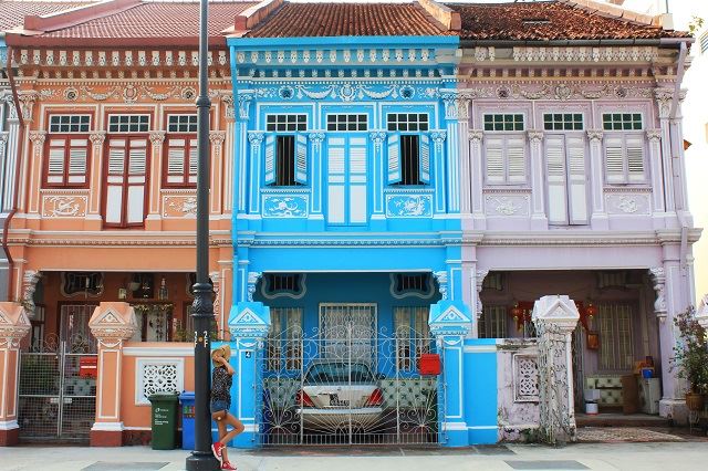 プラナカン建築が残るこちらのエリアもカラフルな家が並んでいて