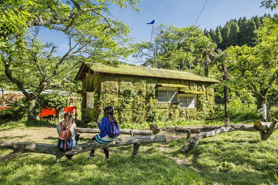 苔と山野草で覆われた建物は、もともとは駅員の詰所だった小屋!