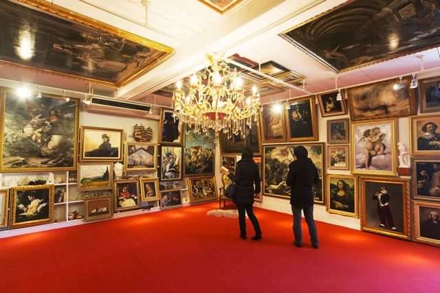 複製とはいえ侮るなかれ!赤い絨毯とシャンデリアがある空間に飾られた作品は、豪華で見ごたえ十分ですよ。