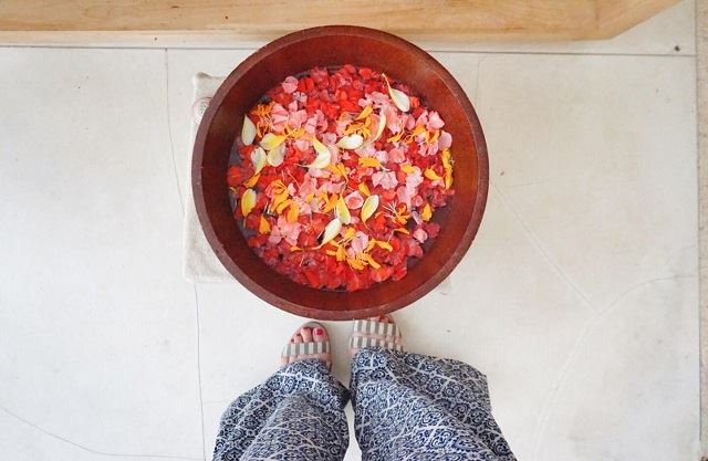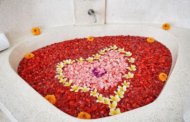 たっぷりマッサージやパックをしてもらった最後には、このフラワーバスにゆっくり浸かってコース終了です。バラの花びらでしきつめられたお風呂は、とってもいい香りで可愛くて幸せな気分になりました!