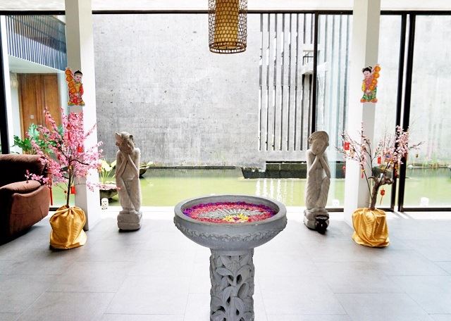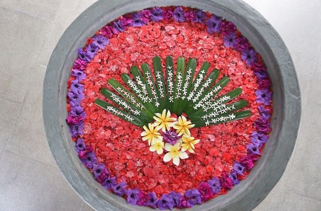 スミニャックのサンセット通り沿いの「ルヴィア・スパ」。開放感のある広々としたロビーは、ウッディでモダンな造り。トリートメントルームは全室ウォーターガーデンを囲むように配され、圧迫感のない洗練された空間になっています。1人に1つずつのバスタブが完備されていて、ゆったりとフラワーバスを楽しめるのも嬉しいポイント!! セラピストの技術もしっかりしていて、満足度の高いひとときを過ごせます。