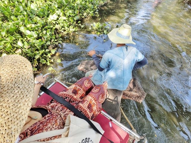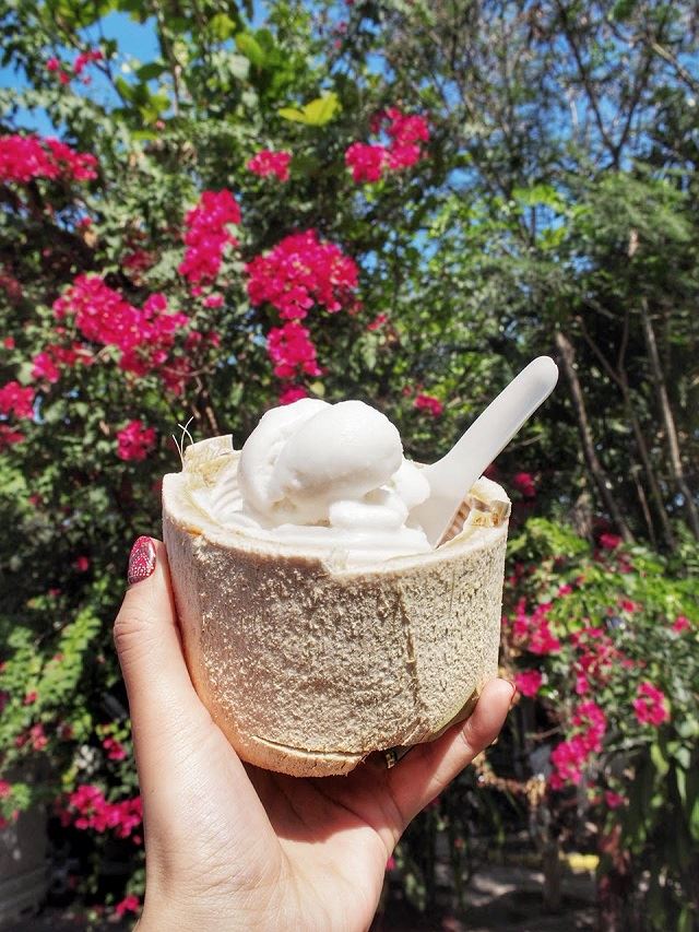 池の中をじゃぶじゃぶ歩くのは初めてだったので、とても楽しめました。最後にゾウ使いさんにチップは100bathでした。受付に売っているバナナは買えばゾウさんにあげられます。ゾウさん乗りが終わって他の参加者を待っている間はココナッツアイスで休憩してました。あったかい国で食べるココナッツアイスは最高です!