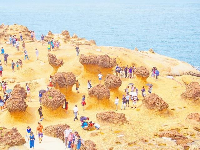 風化や海により浸食されてできた奇岩が立ち並び、風光明媚な景色が広がります。気の遠くなるような年月の海蝕、風蝕を経て作られた芸術的な海岸景色にも、圧倒される事間違いありません。アクセス一例:国光客運バスは台北駅東三門ターミナルから金山方面往きに乗車し、野柳で下車。