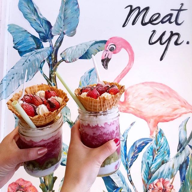 台北にある、スムージーが人気のお店。店名の「meat」は肉という意味ですが、こちらのお店、実はハンバーガー屋さんなんです。今やハンバーガー以上に人気なのがスムージー!見た目ほど甘くなく、美味しいと人気です。イートインの場合、ガラスのジャーで提供されます。店内のピンクのパステルカラーの壁、外のフラミンゴが描かれた柱など、ドリンクと一緒にぜひ写真を撮りたいお店です。アクセス:MRT西門駅から徒歩約7分。