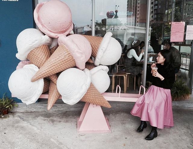 台北から新幹線で約1時間で行くことができる台中にあるアイスクリーム屋さん。お店の外にはアイスクリームのオブジェがくっついたシーソーがあり、写真スポットになっています。それだけでなく、店内にはアイスクリームのオブジェで埋め尽くされたプールが!中央の浮き輪に座って2階から写真が撮れるということで、若い女性を中心に大人気です。アクセス:台湾鉄道台中駅(台中火車站)近くからバスに乗り「草悟道」で下車。そこから徒歩約2分。
