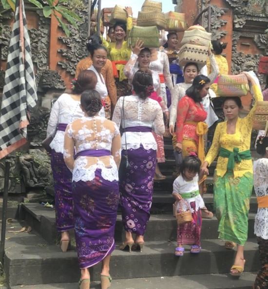 ウブドに向かう途中、お祈りへ向かう人々を見かけました。皆伝統的な衣装を着ていてとても綺麗でした。ヒンドゥー教のバリ島では私達の知らない文化をたくさん見ることができました。