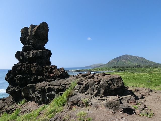 @happy_misaeさんコメント:マカプゥからハナウマ方向に道路をあがっていくとマカプゥトレイルの入り口があります。ここは道がコンクリートで舗装され、とてもライトなトレイルなので初心者の方におすすめです。 この横にはペレの椅子があります。その下のビーチはロコ御用達の透明度の高いビーチで手作りの飛び込み台もありますよ。
