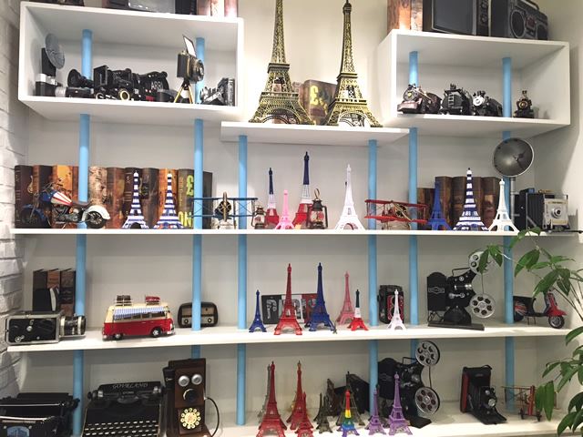 店内のインテリアはカフェの名前にちなんで、エッフェル塔などパリの関連小物がオシャレに飾られています。