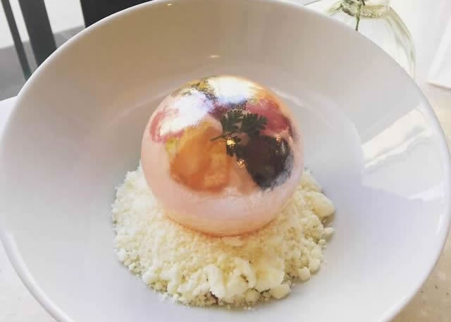 行ってみたい!ソウルのお洒落カフェランキングで8位にランクインしたこちらのカフェでは、こちらのデザートがオススメ!水晶玉のような飴でできたボールの中に、食べられるお花が入っています。飴をスプーンで割って、ふわふわのメレンゲにベリーソースをかけて食べてくださいね♪