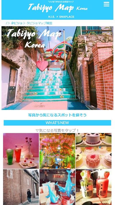 SNSで反響のある韓国のフォトジェニックスポットを地図上に表示し、写真から行き先を検討するツール「タビジョマップ韓国」!フォトジェニックな旅を効率よく楽しむことができます。