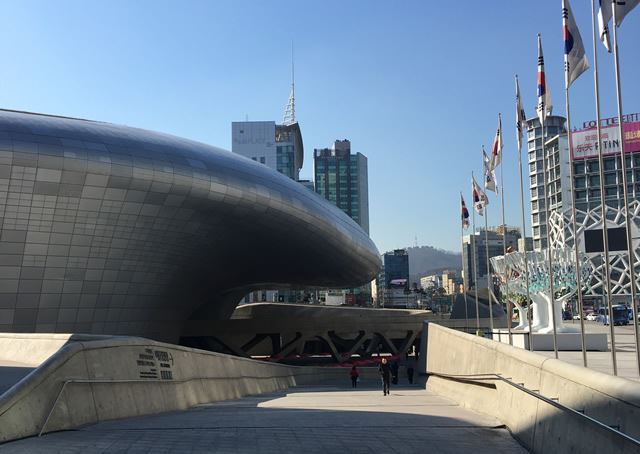 2014年3月にできた新たなソウルのランドマーク的施設です。3次元の立体設計技法で作られたデザインは、近未来的な雰囲気漂います。建築家ザハ・ハディッド氏が設計しました。