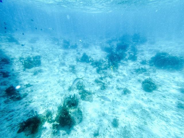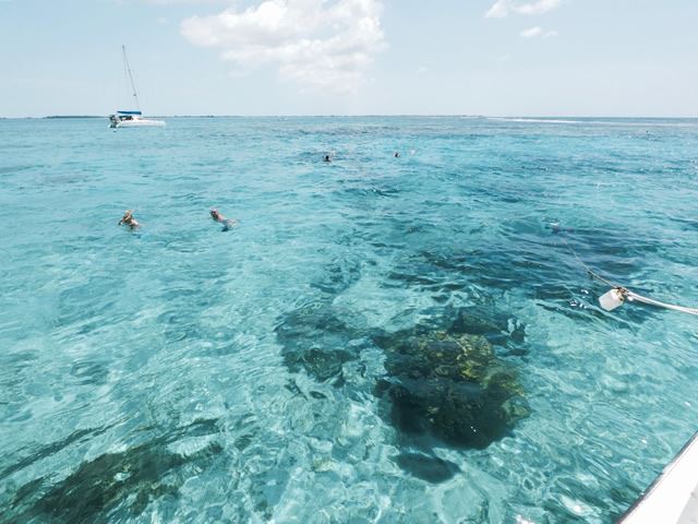 カヨ・ラルゴは島の周りは大体遠浅で海がとてもクリアで綺麗なんです。遠浅なので、島には船をつけられないので、ツアーポイントには離れた所で船から降りて歩いて向かうスタイルです。