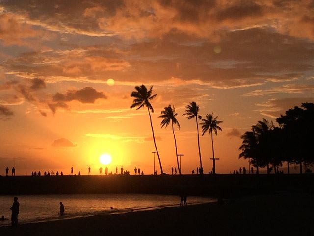 アラモアナビーチパーク内、ワイキキ寄りの人工島は「マジック・アイランド」と呼ばれ、防波堤で囲まれた入り江の為、波がなく静かです。