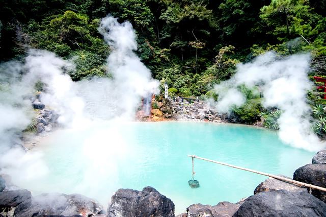 中でもコバルトブルーの色をした一番大きい地獄、「海地獄」は、見た目の涼しさから想像できない98度という熱湯が湧き出ています!