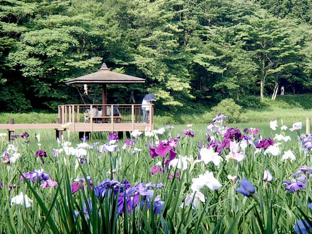 平安時代に鶴見岳社の歌舞女が住んでいたといわれるなど、伝説につつまれた湖。6月中旬からは約80種類、約1万5千株の花しょうぶが見頃を迎えます。湖面に広がる、淡い紫色に染まった花々をお楽しみ下さい!