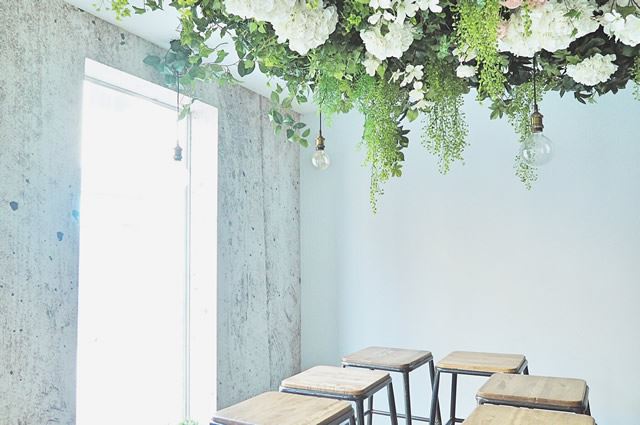 天井いっぱいにお花が広がっていて、まさにフォトジェニック。テラス席もあるのでお天気の良い日にも気持ちが良さそう。