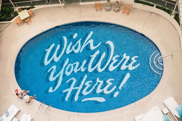 「Wish You Were Here!」と書かれたプールはSNSでもおなじみですね!