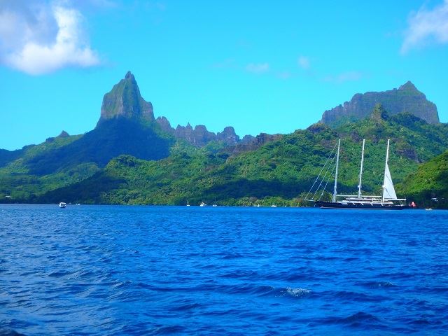 タヒチ島からモーレア島へ フェリーで約30分です。迫力のある山が海のすぐ側から現れます。