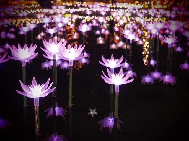 大谷石の採掘現場が現在は整備され、ライトアップされています。