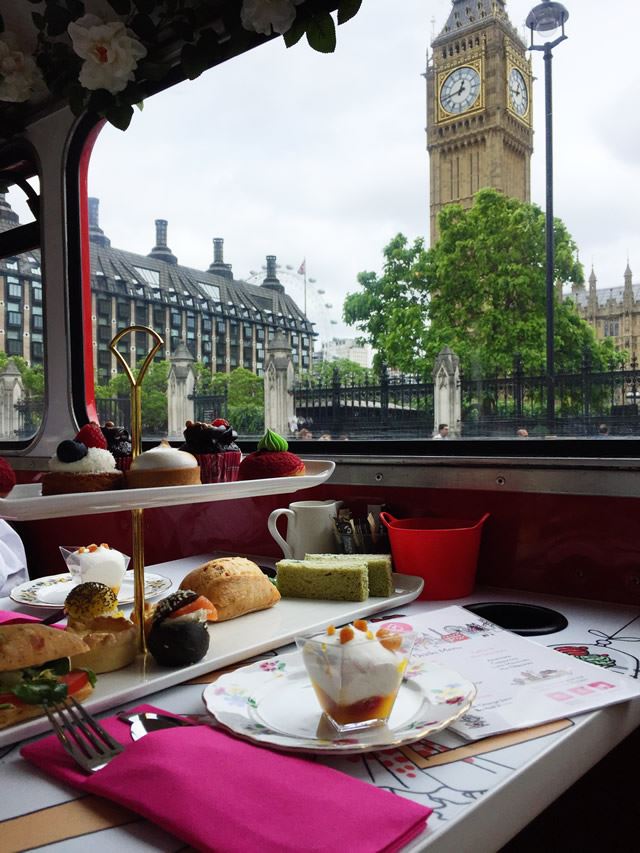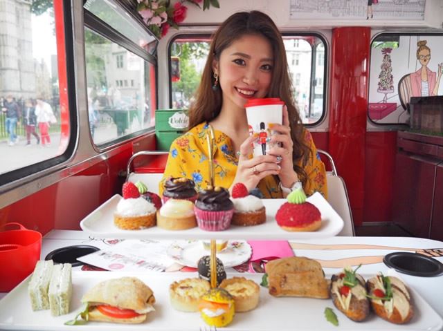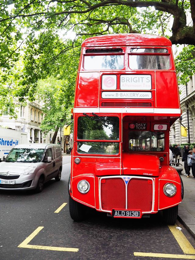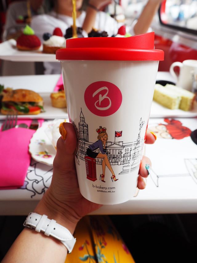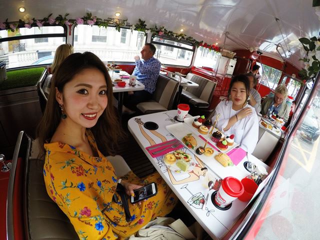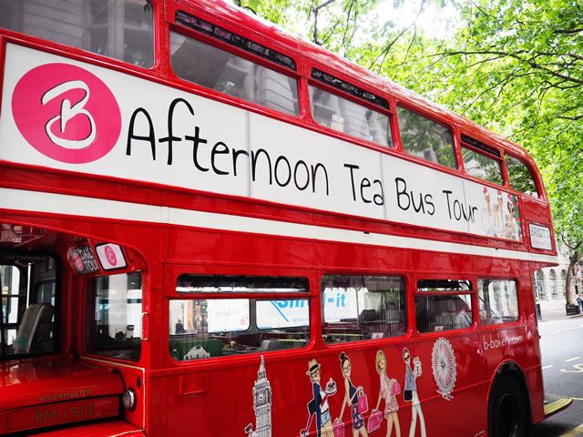 私はロンドン現地のH.I.S.まで申し込みに行きました。1人60£(日本円で約8500円)。コヴェント・ガーデンの人気のベーカリー「BB Bakery」の赤いバス、ダブルデッカーに乗って市内を巡りながら、バスの中でゆっーーたりとアフタヌーン・ティーを楽しめます。
