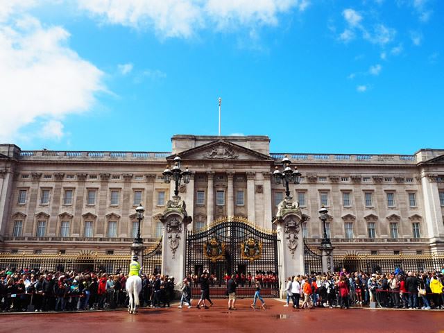 VICTORIA駅で降りて5分ほど歩くと着きます。バッキンガム宮殿はエリザベス女王の公邸、今でも実際に使われている世界でも数少ない王宮の一つ。