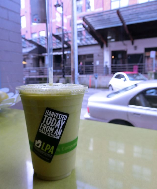 店内で草を栽培し、注文が入るとスムージーにしてくれます。新鮮なスムージーはとっても健康的!